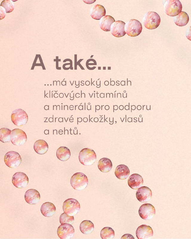 Je bohatý na důležité vitamíny a minerály, jako je biotin, jód, vitamin A, niacin a zinek, které přispívají k udržení normální pokožky. Collagen Skin Booster také obsahuje selen a zinek, které pomáhají udržovat normální vlasy a nehty.